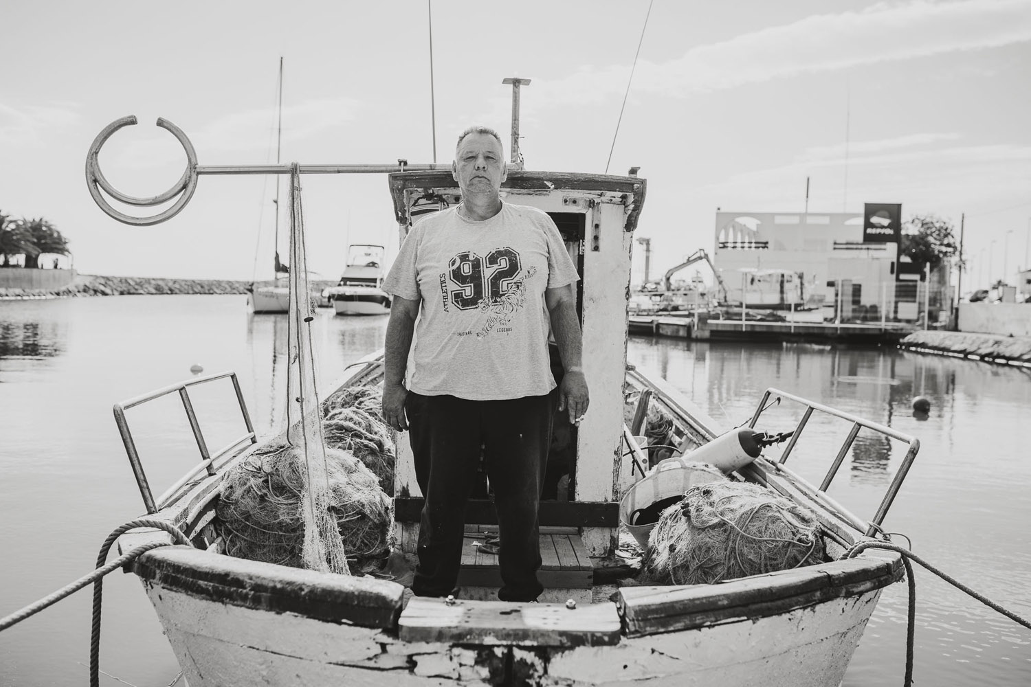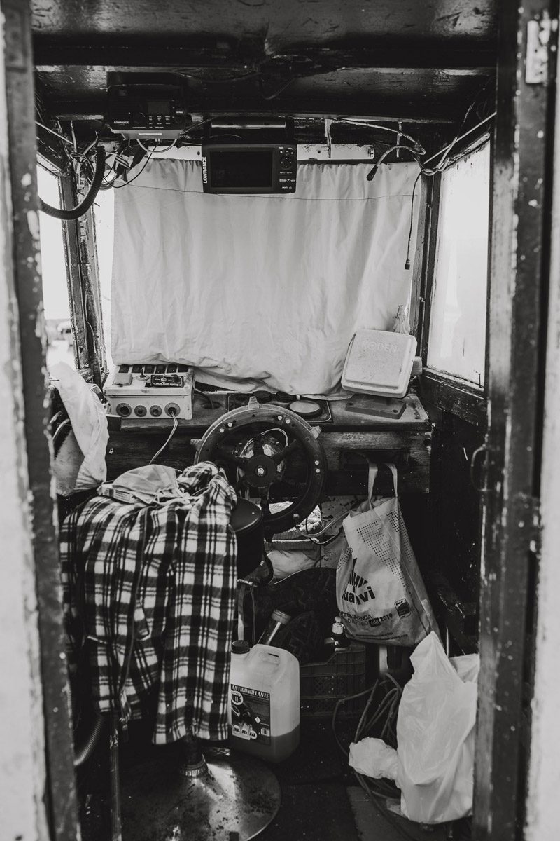 Manuel no parece preocupado por la incidencia de la covid-19 en su trabajo de pescador. Su oficio es, sin duda, de primera necesidad, pero la profesión sigue siendo solitaria, por lo que las medidas de seguridad, aunque presentes, se quedan quizás en un segundo plano.
